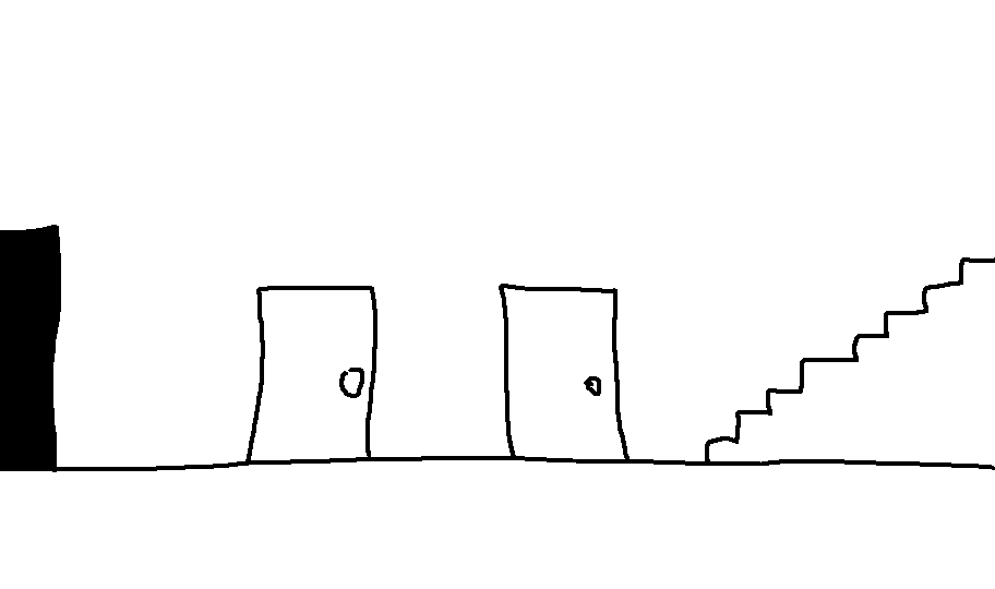 You sneak in the front door. There are two doors on your left and a staircase dead ahead.