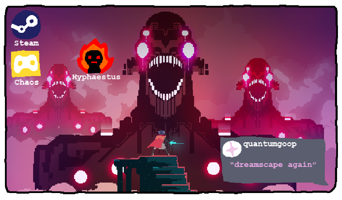 Your desktop is relatively barren, though it does sport a spunky WALLPAPER that you picked out from one of your favorite games. It also seems that one of your Chaos friends has messaged you.